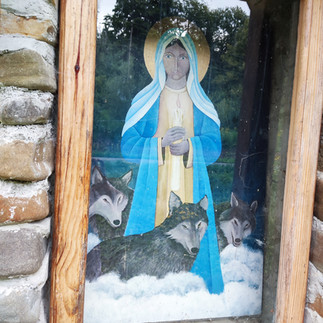 Spacer leśna droga łącząca Ulucz z Borownicą znów przenosi mnie w czasie. Potok płynący wzdłuż drogi. Zapach ten sam, które zapamiętałam z dzieciństwa. Te same gigantyczne liście łopianu, olbrzymie skrzypy, różowe kwiaty sadźca i żółte rudbekii nagiej. W kapliczce przy drodze obraz Matki Bożej w wilkami. Chyba jest nowy. Jakieś 60 lat temu mój tata przyjeżdżał tu na rowerze, żeby wiosną zbierać białe kwiaty śnieżyczki.